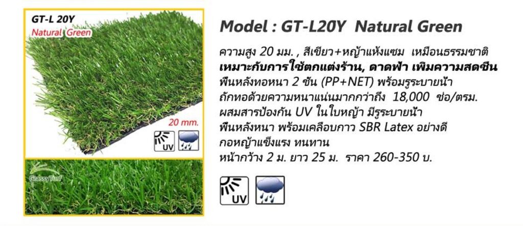 หญ้าเทียม ตกแต่ง รุ่น GT-L20Y (Natural Green)