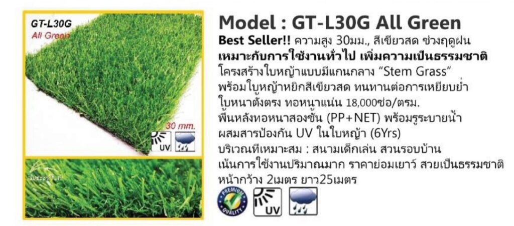 หญ้าเทียม ตกแต่ง รุ่น GT-L30G (All Green)